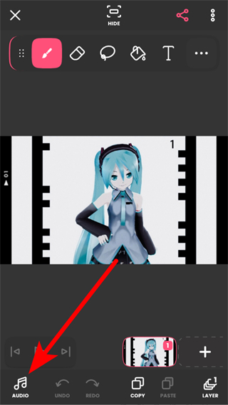 2、在編輯頁面點擊左下角AUDIO,進入音頻操作頁面。