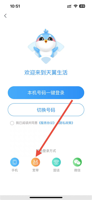 2、在登錄方式選擇頁面,點擊寬帶選項。
