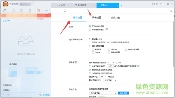 1.在綠色資源網下載并安裝迅雷最新版,雙擊打開(如下圖就是主界面了)。