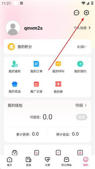 2、進入我的頁面后,點擊右上角的設置圖標。