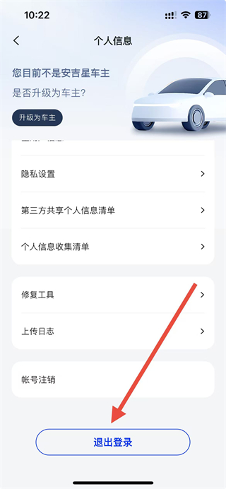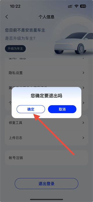 4、在提示彈窗中,點擊確定選項,即可完成安吉星賬號的退出登錄操作。