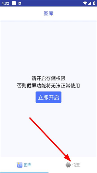 1、打開一鍵截屏app,選擇并點擊底部的設置選項。