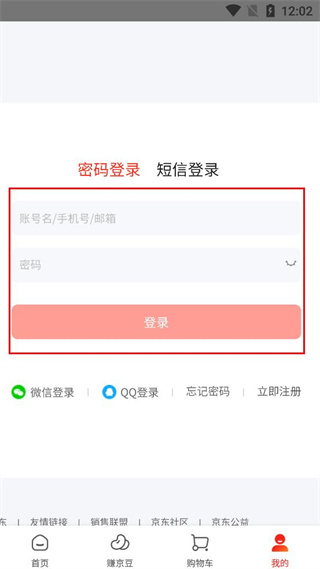 4、進入賬號登錄界面后,選擇對應登錄方式,在輸入框內填寫相關賬號信息。