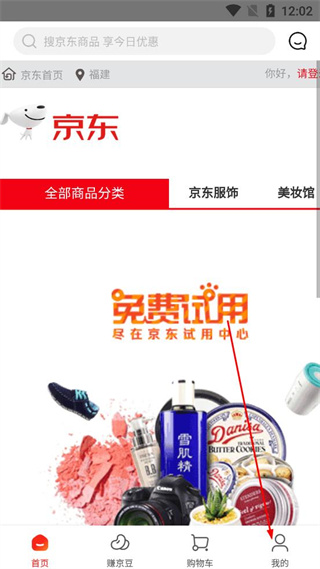 2、進入京東飯粒首頁,找到底部導航欄的我的選項,點擊該選項進入個人頁面。