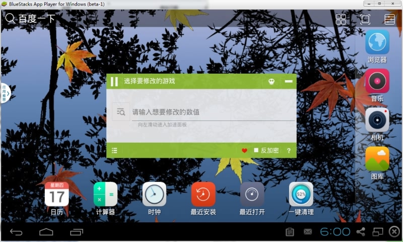 (注:本示范版本為燒餅修改器2.5.2版本;即既可以在手機中運行,又可以借助藍手指安卓模擬器在電腦中運行的版本;圖中為在藍手指模擬器中修改的示范;手機同理)。