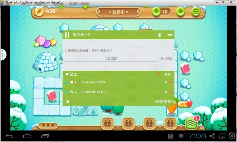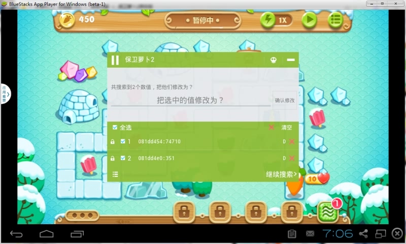 目前在藍手指安卓模擬器用燒餅修改器測試的結果是修改金幣只能對當前關卡有效,進入下一關卡,如果金幣數被修改器鎖定的話,必然閃退,所以玩家只能辛苦點,玩一關改一關了!