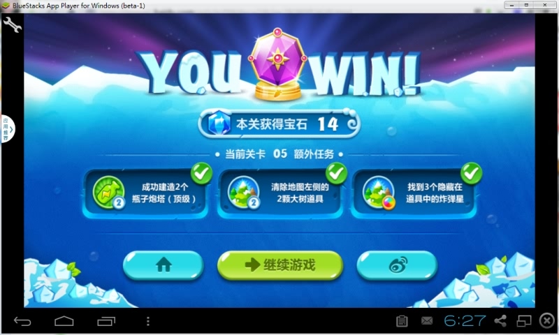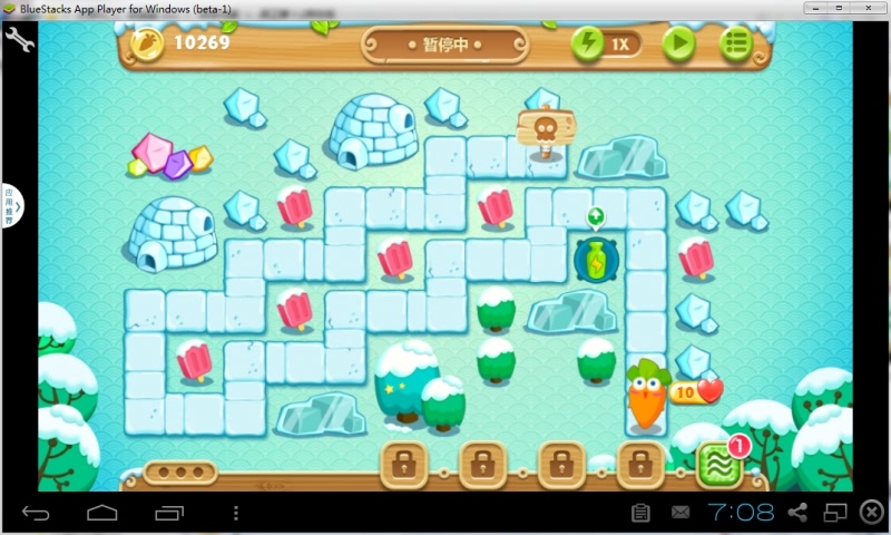 然后運行保衛蘿卜2,隨便選一個關卡進入,玩10秒以上,點游戲暫停按鈕;