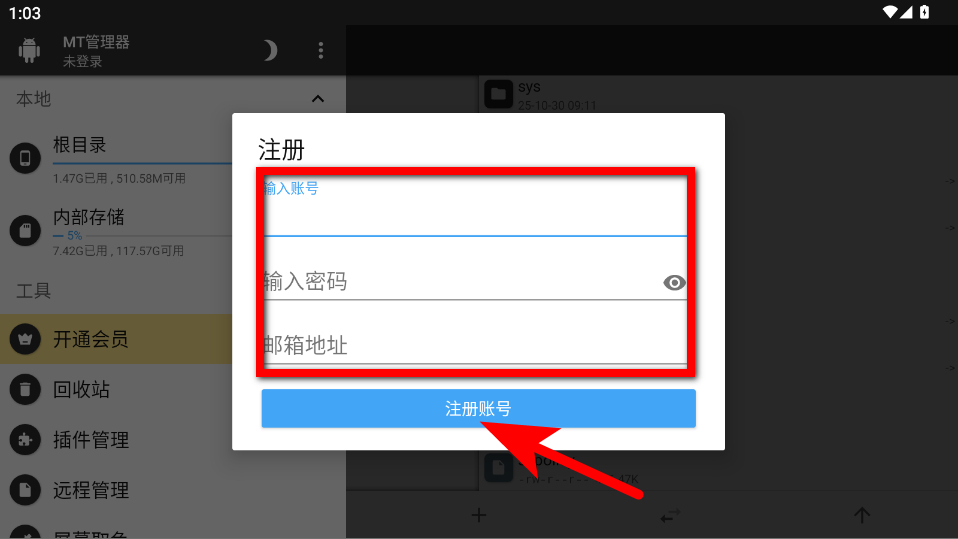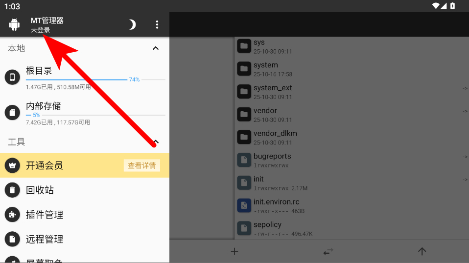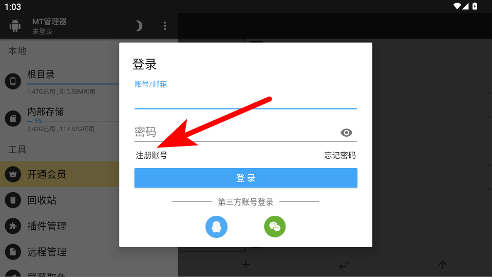 2、在功能列表中,點擊MT管理器未登錄區域,進入登錄界面。