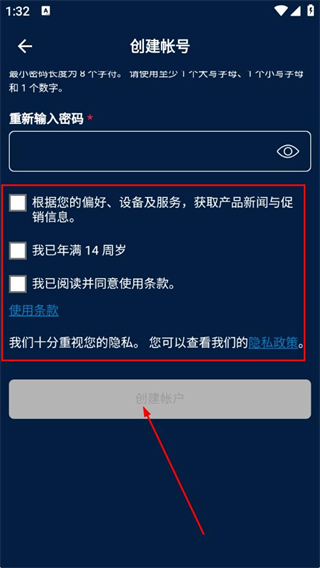 4、勾選相關協議,點擊創建帳戶,即可完成賬號注冊操作。