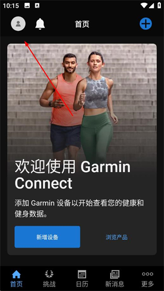 1、打開Garmin Connect APP,點擊左上角個人頭像圖標。