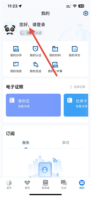 1、打開天府通辦app,點擊我的頁面中登錄區域,進入登錄界面。