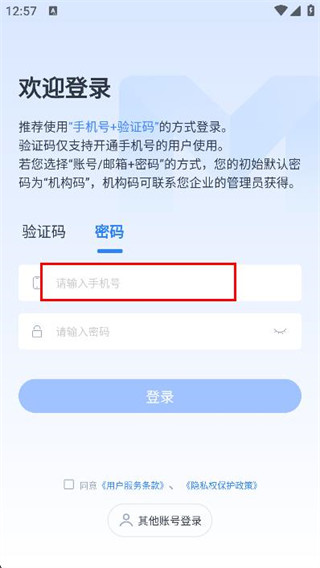 2、點擊輸入框在輸入框中,填寫需要登錄的手機號。