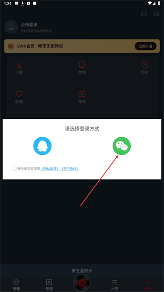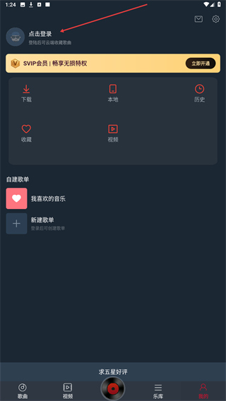 2、在個人中心頁面上方找到點擊登錄選項,點擊觸發登錄方式選擇界面。