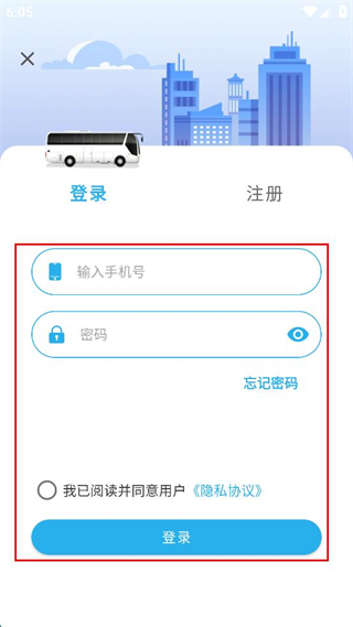 4、在登錄界面填寫手機號和密碼,勾選協議后,點擊登錄按鈕完成登錄操作。