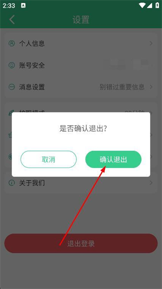 4、在提示窗口中,點擊確認退出,完成賬號退出操作。