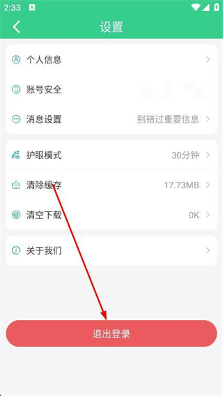3、在設置頁面,下滑找到并點擊底部的退出登錄按鈕。