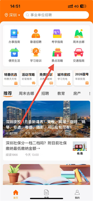 1、打開本地寶APP,在首頁點擊景點攻略選項。