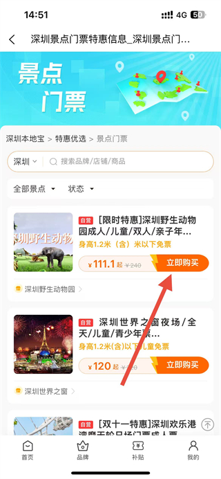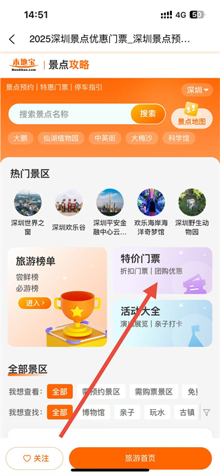 3、進入特價門票頁面后,點擊選擇想要購買門票的景點,也可以通過搜索選擇。