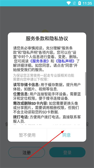 1、打開一起走專業版,在服務條款彈窗中點擊同意。