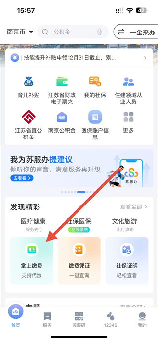 1、打開蘇服辦APP,點擊底部服務選項進入服務頁面。