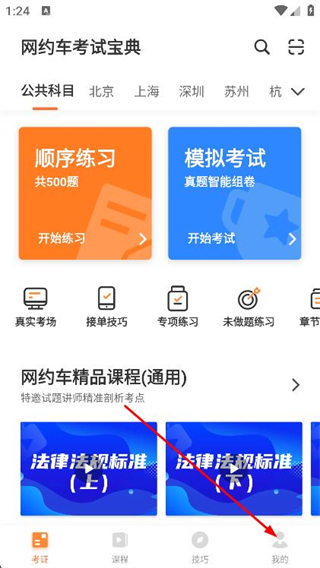 1、打開網約車考試寶典APP,進入主界面,點擊底部導航欄中的我的。