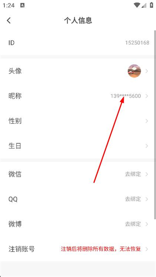2、在我的頁面中,點擊手機號區域進入個人信息頁面。