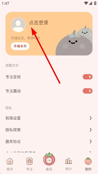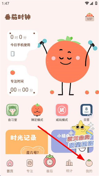 1、打開番茄時鐘app,點擊底部導航欄的我的選項。