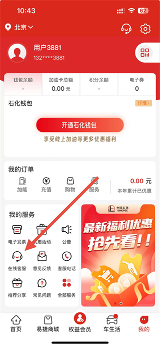 1、在易捷加油主界面,點擊底部我的選項,進入個人相關操作頁面。