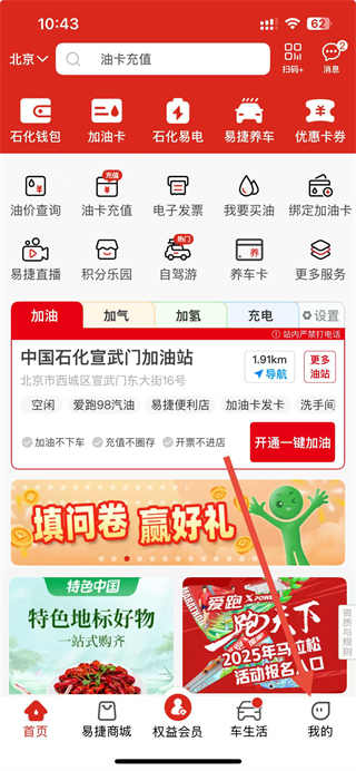 1、在易捷加油界面中,點擊底部我的選項,可進入個人頁面。