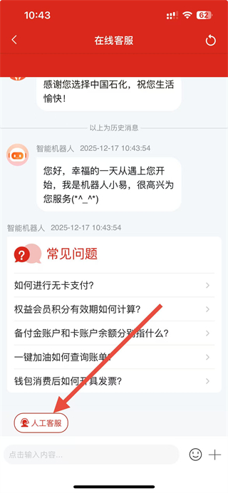 3、在客服界面中,找到底部的人工客服按鈕并點擊,可觸發轉人工客服的操作流程。