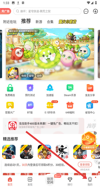 1、打開蟲蟲助手之后,在其首頁界面我們可以點擊下方的【排行】進入到平臺的排行榜功能界面,以此為舉例,給大家演示怎么安裝游戲;