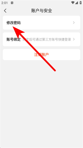 3、在賬戶與安全的頁面,我們需要點擊修改密碼的選項。