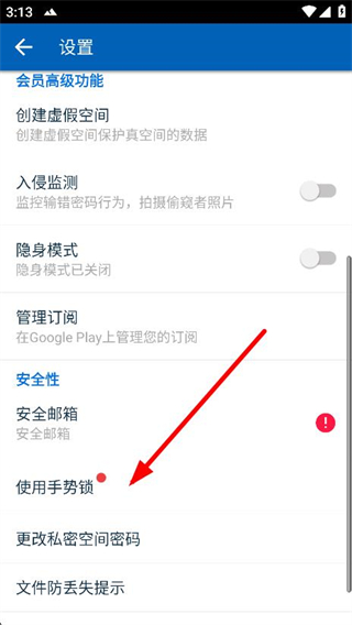 3、在設置頁面中,找到并點擊使用手勢鎖選項。