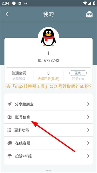2、在我的頁面中,找到并點擊下方的賬號信息選項。