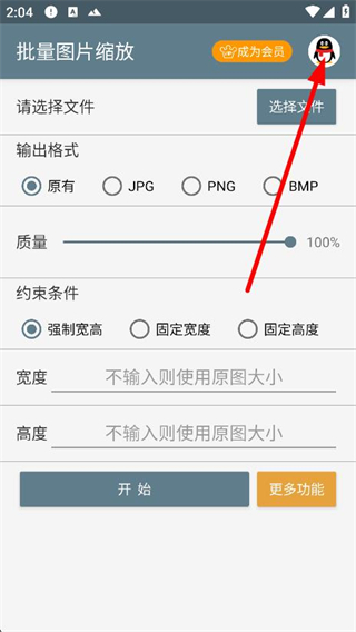 1、打開批量圖片縮放app,點擊頁面右上角的頭像圖標。