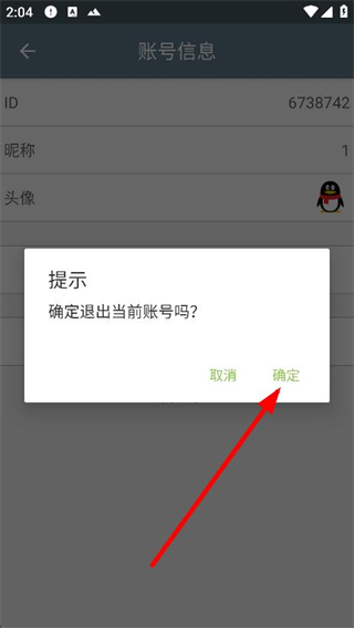 4、在提示框里,點擊確定按鈕,即可完成賬號退出登錄。
