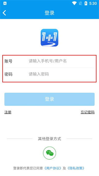 3、進入登錄頁面后,找到賬號輸入框,輸入對應的手機號或用戶名,再找到密碼輸入框填入密碼。
