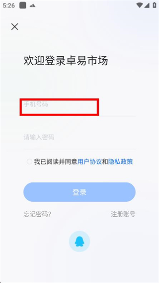 3、在登錄頁面,在輸入框輸入需要登錄的手機號。