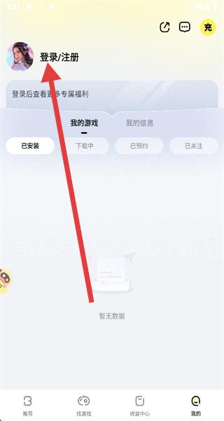 3、進入軟件后可以點擊自己的最上方的賬號欄目,進入自己的賬號管理功能中;