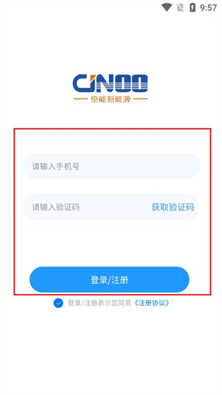 4、在填寫頁面輸入手機號,獲取并輸入驗證碼,點擊登錄/注冊按鈕完成操作。