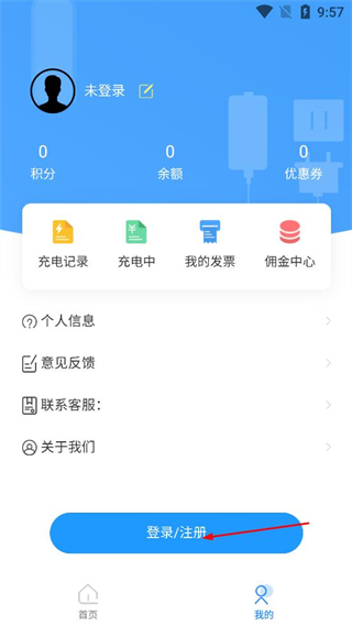 3、在個人中心頁面找到登錄/注冊按鈕,點擊該按鈕,進入登錄信息填寫頁面。
