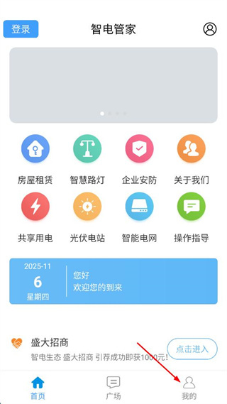 1、打開智電管家APP首頁,點擊底部我的選項進入個人頁面。