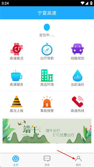 1、進入寧夏高速主界面,找到底部導航欄的我的選項,點擊該選項進入對應的頁面。