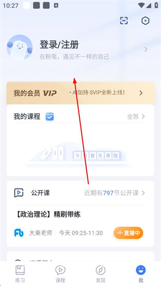 2、進入我的頁面后,點擊登錄/注冊區域。