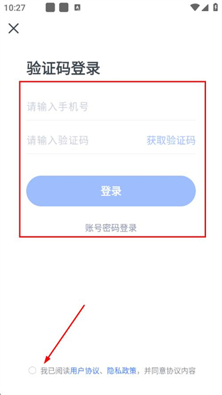 3、輸入手機號、獲取并填寫驗證碼,勾選同意協議后完成注冊。