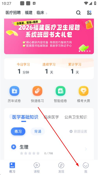 1、打開粉筆醫療app,點擊底部導航欄的我選項。