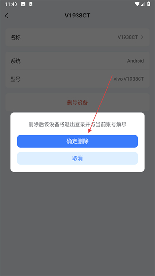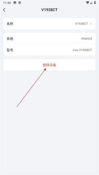3、進入設備詳情頁面之后,點擊刪除設備選項。