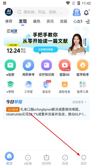 1、打開醫脈通,點擊底部導航欄的我的選項。