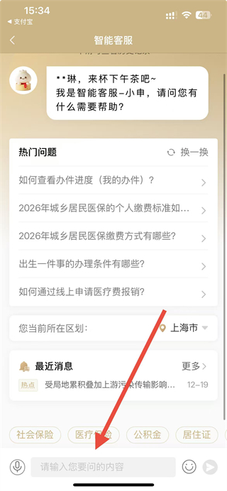 3、在智能客服頁面底部的輸入框中,輸入想要咨詢的內容,即可向客服發起提問,獲取針對性幫助。