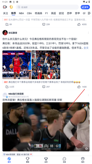 1、啟動騰訊體育的應用,在首頁點擊要播放的視頻。